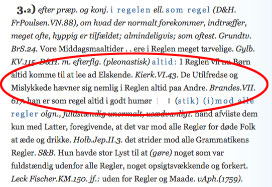 Men hvis man tænker lidt over det, giver det ikke så meget mening. Udtrykket som regel betyder ‘næsten altid’, hvilket strider imod ordet altid. Det er altså selvmodsigende, og her på Majonæse anbefaler vi at slette enten som regel eller altid, afhængigt af hvad man mener (altså om noget sker altid eller kun tit):