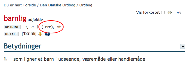 Find alle komparativer og superlativer på denne side, og tjek, om de harmonerer med angivelserne i Den Danske Ordbog.